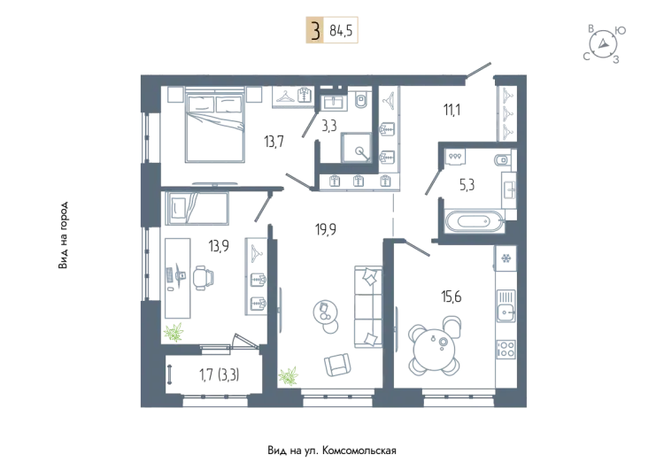 84.5 м²