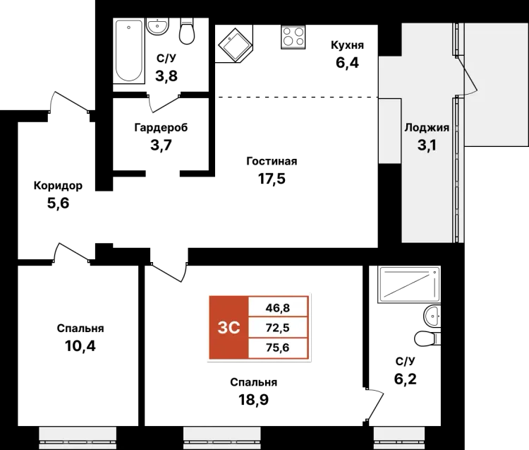 75.6 м²