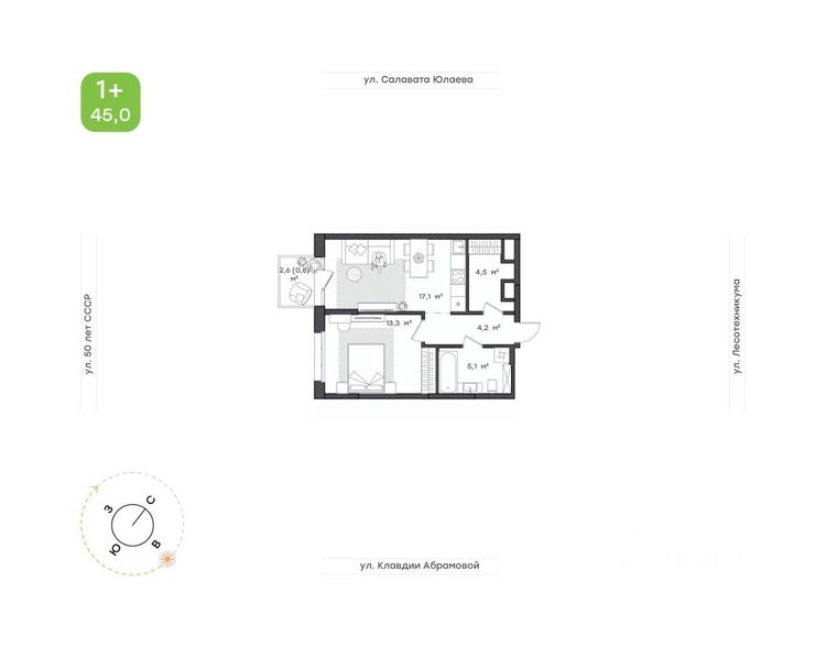 1-к. квартира 45 м²
