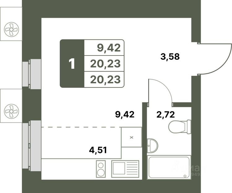 1-к. квартира 20.3 м²