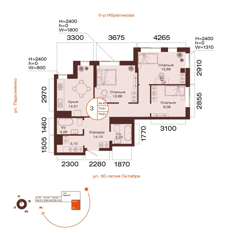 70.6 м²