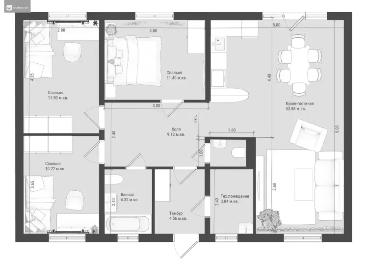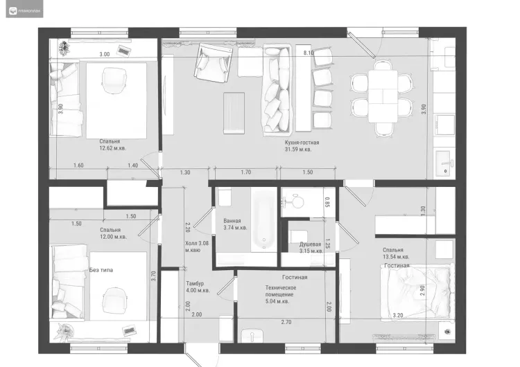 - Площадь дома90 м²90 м²