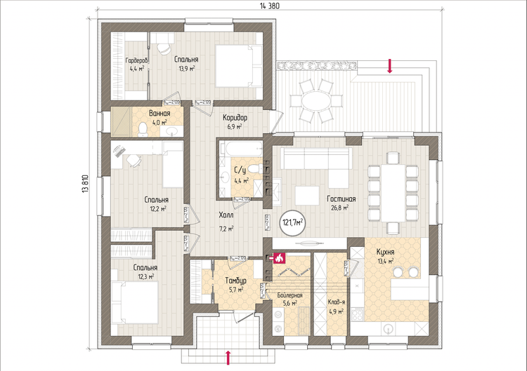 - Площадь дома121 м²121 м²