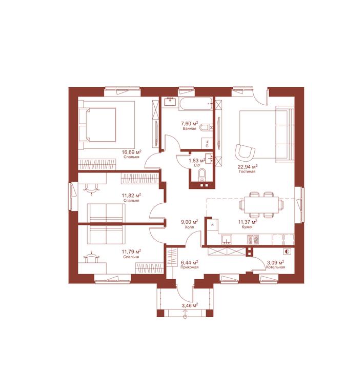 - Площадь дома103 м²103 м²
