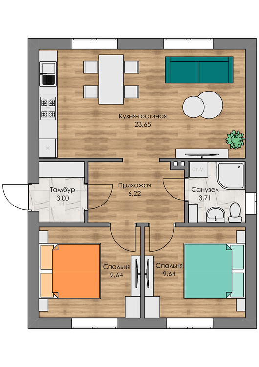 - Площадь дома60 м²60 м²