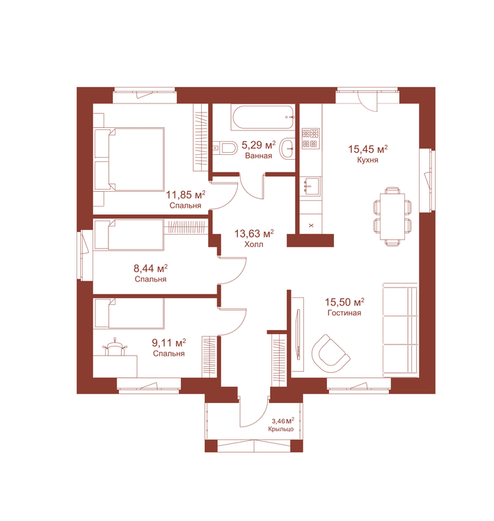 - Площадь дома83 м²83 м²