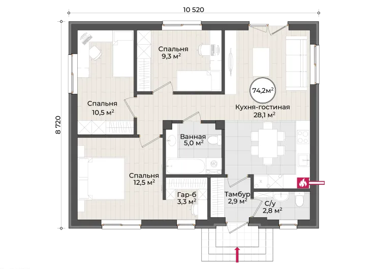 - Площадь дома75 м²75 м²