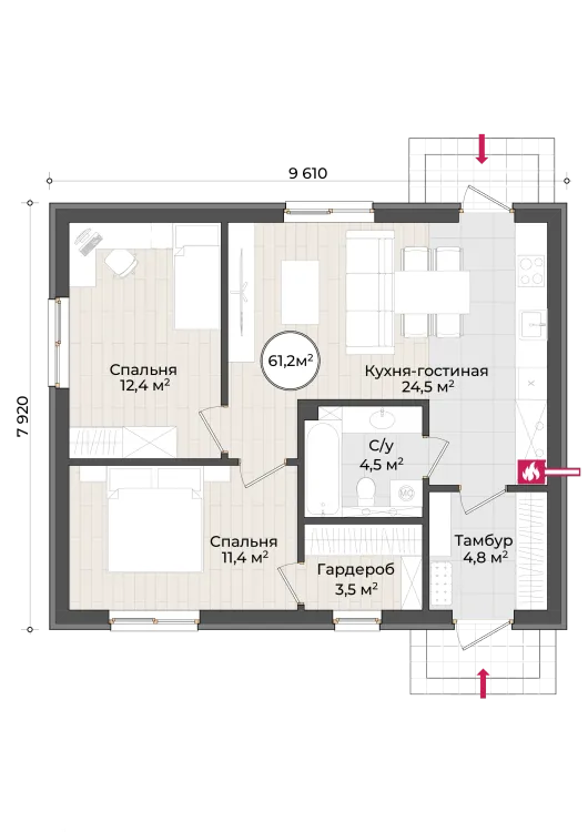 - Площадь дома62 м²62 м²