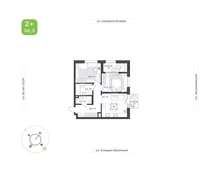 56.3 м²