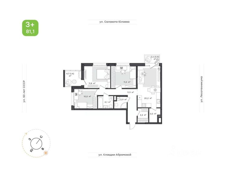 81.1 м²