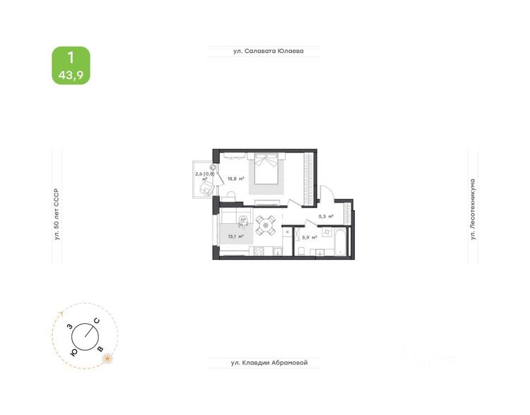 43.9 м²