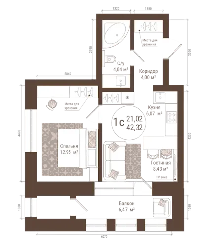 42.3 м²